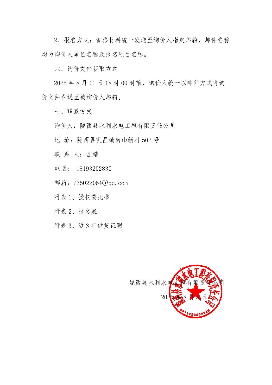 陇西县引洮水资源高效利用配套及节水供水工程(第三标段)PE管材公开询价公告