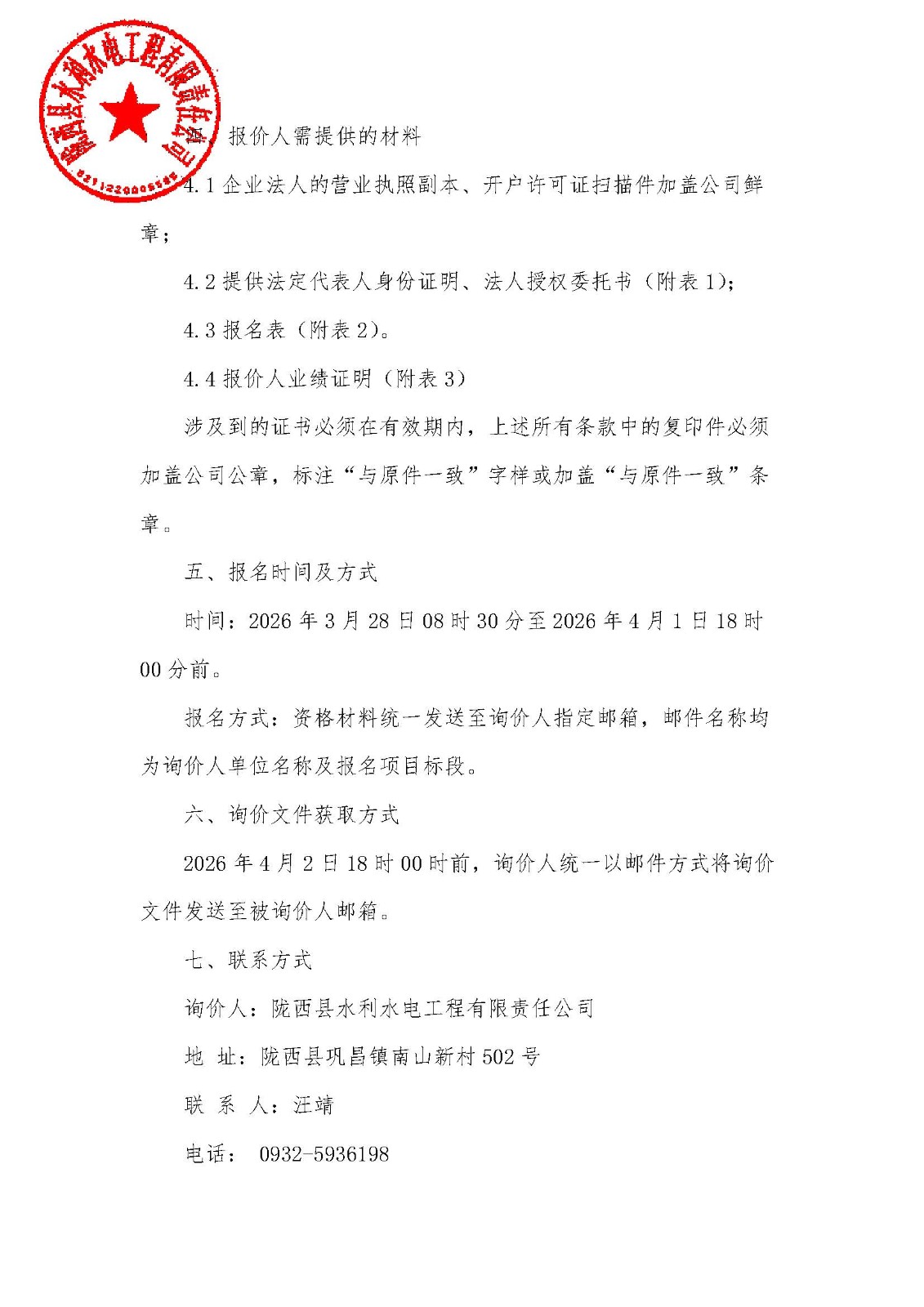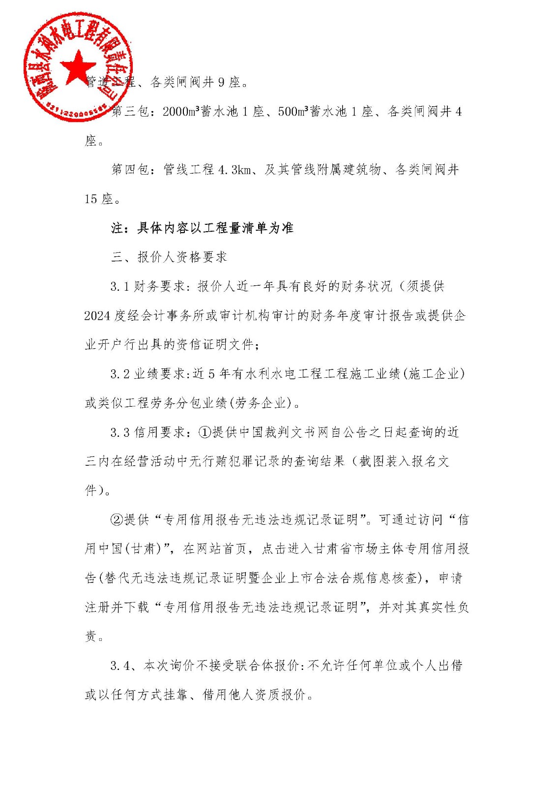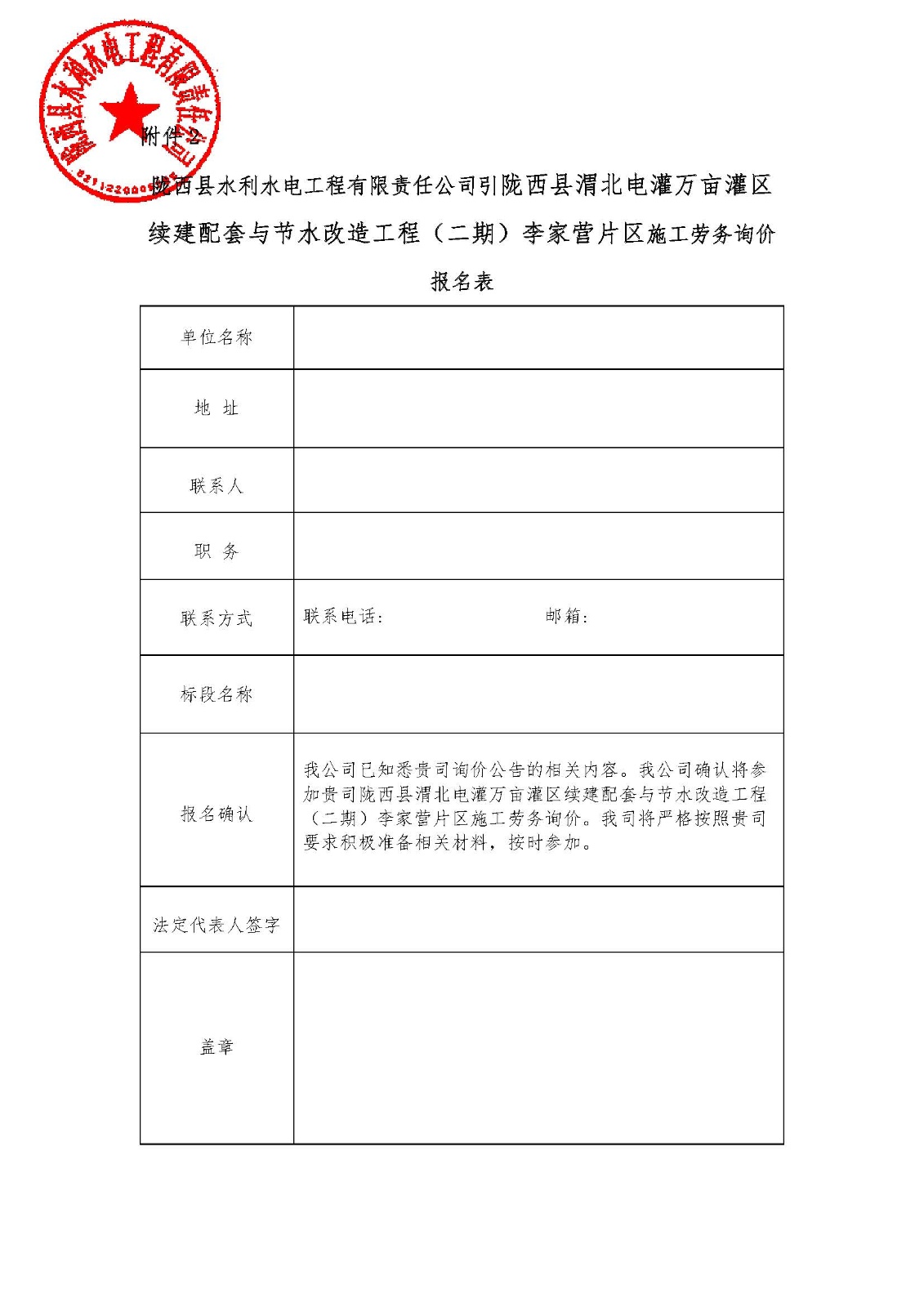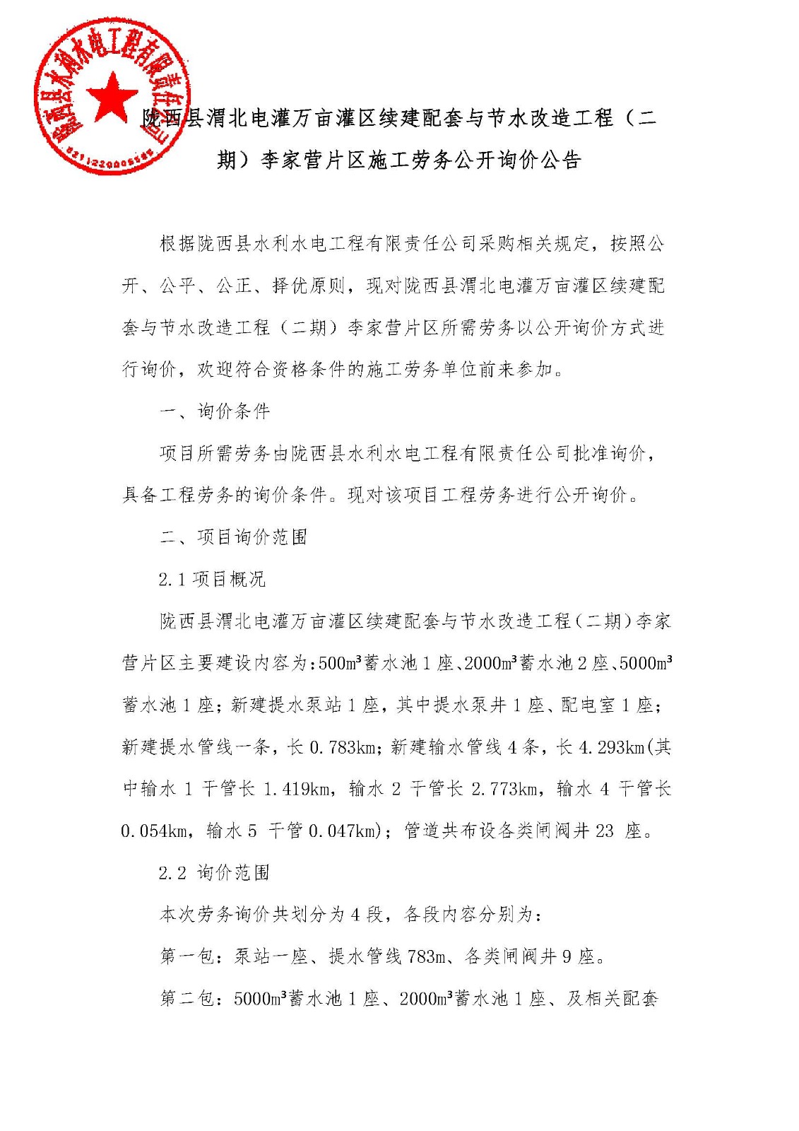 陇西县渭北电灌万亩灌区续建配套与节水改造工程(二期)李家营片区施工劳务询价公告